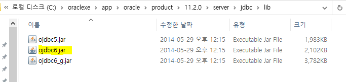 C:\ 오라클 폴더... \oracle\product\11.2.0\server\jdbc\lib